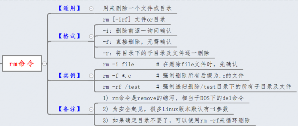 功能:rm命令用来删除文件,或目录及其下的所有文件及子目录。