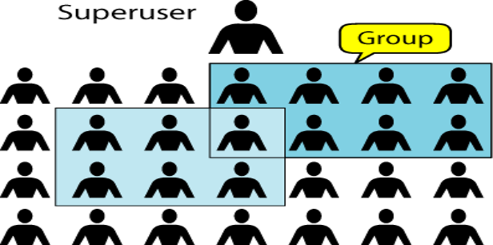 多对一:多个用户可以存在一个组中,这些用户具有和组相同的权限。