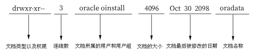 第四部分是对文档拥有者之外的其它用户权限的设定,“r–”表示其它用户或用户组对oradata目录只有读的权限