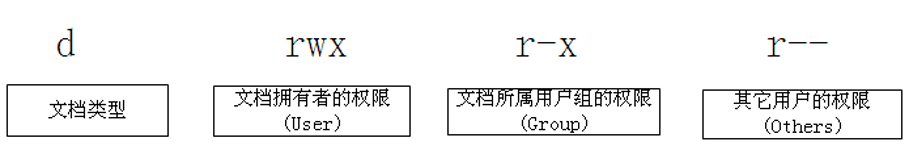 在接下来的三个部分中,三个字符为一组,每个字符的含义为:“r”表示只读,即read;“w”表示可写,即write;“x”表示可执行,即execute;“-”表示无此权限,即为空。