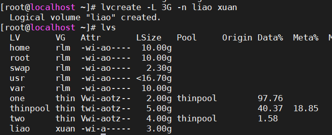 lvcreate -L 3G -n liao xuan