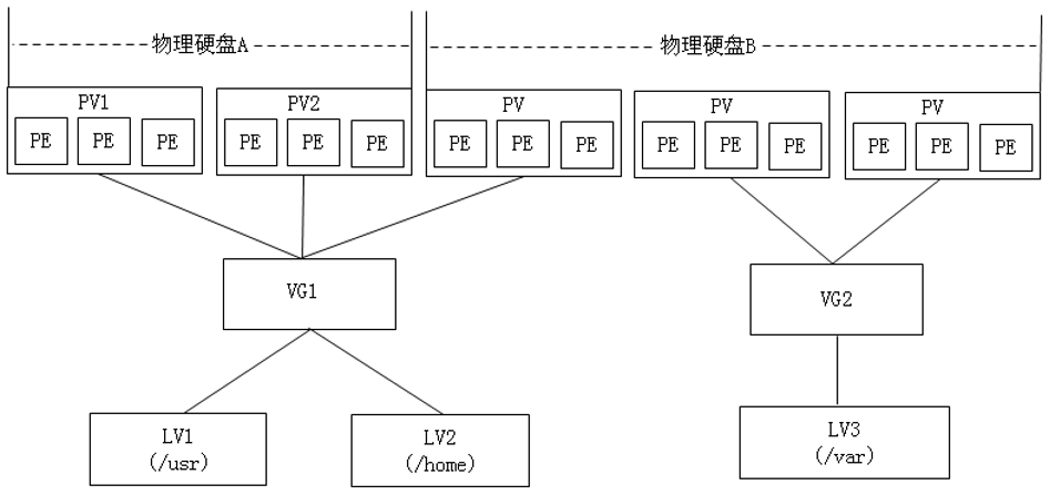 PE(physical extent):PV中可以分配的最小存储单元称为PE