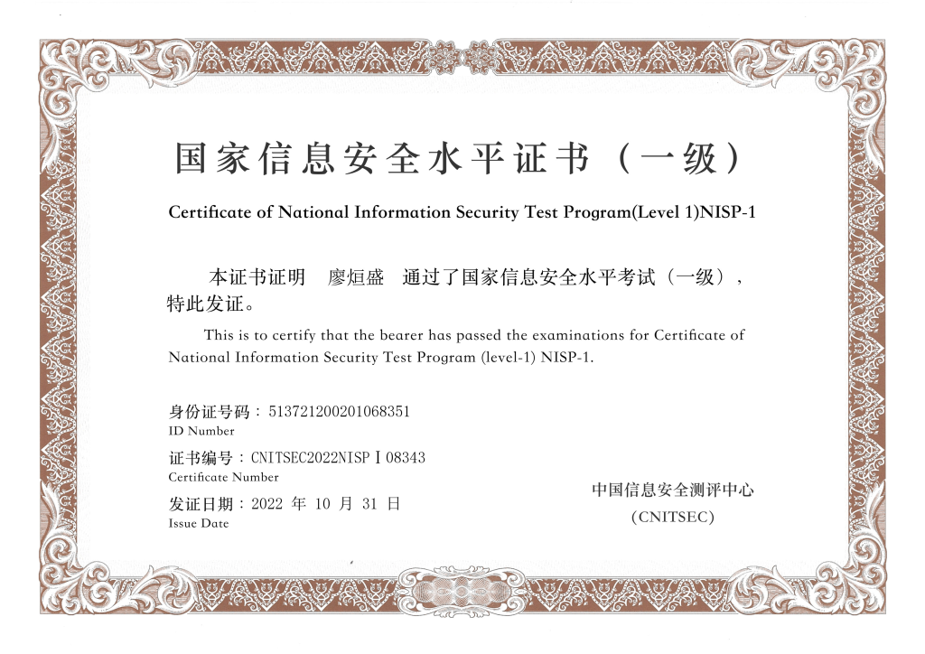 nisp一级国家信息安全水平考试
