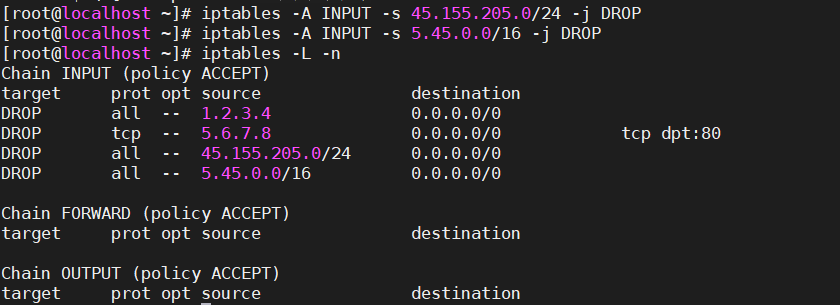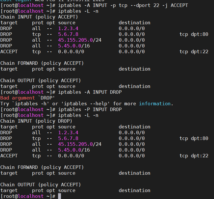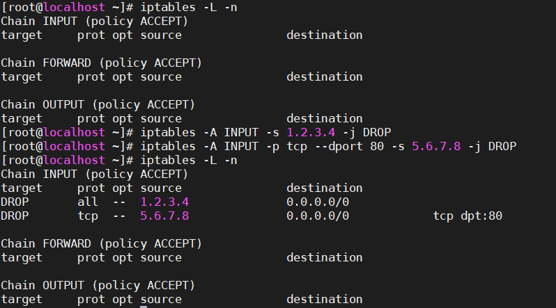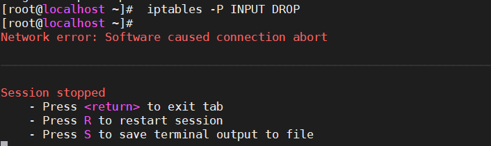 [root@localhost ~]# iptables -P INPUT DROP