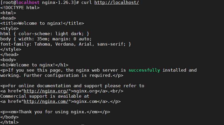 curl http://localhost         netstat -tnlp | grep 80##检查端口