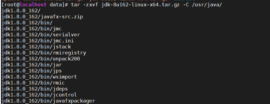 tar -zxvf jdk-8u162-linux-x64.tar.gz -C /usr/java/