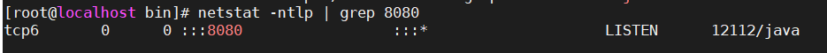 tcp6 0 0 :::8080 :::* LISTEN 12112/java