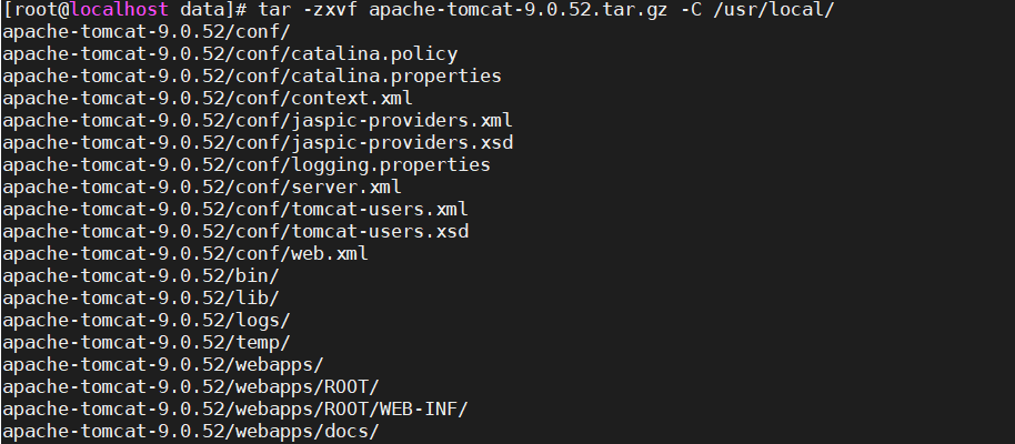 tar -zxvf apache-tomcat-9.0.52.tar.gz -C /usr/local/ #安装tomcat
