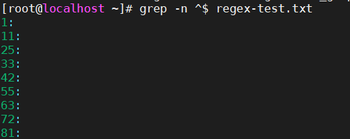 abc$ # 匹配以 “abc” 结尾的行 [0-9]$ # 匹配以数字结尾的行 ^$ # 匹配空行(行首紧接着行尾)