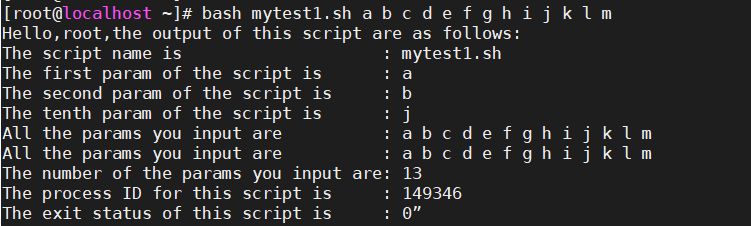 [root@localhost ~]# bash mytest1.sh a b c d e f g h i j k l m