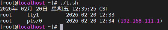 cd #切换到用户根目录,因为.bash_profile在根目录下. .bash_profile #配置用户的命令行环境date #显示日期命令who #显示当前的登录用户