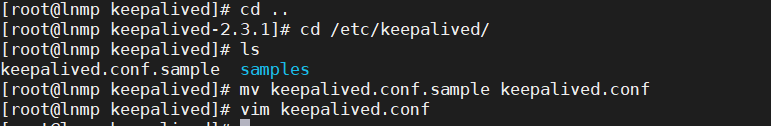 [root@lnmp keepalived]# mv keepalived.conf.sample keepalived.conf