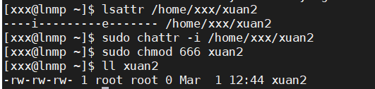# 输出示例:----i--------e-- 文件名 (i 表示不可修改)