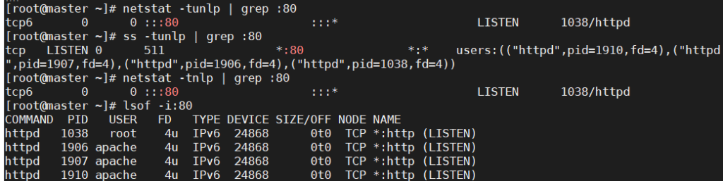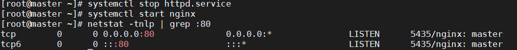 tcp6 0 0 :::80 :::* LISTEN 5435/nginx: master