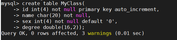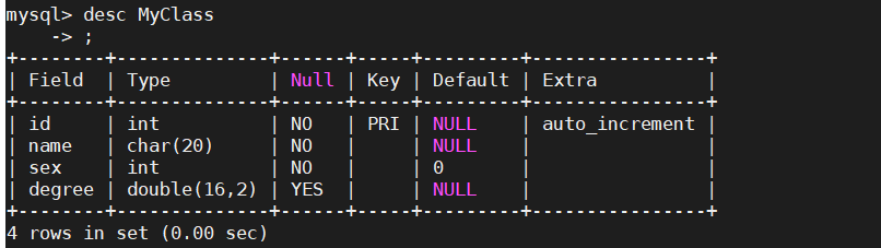 insert into MyClass values(NULL, '张三', 1, 88.5);