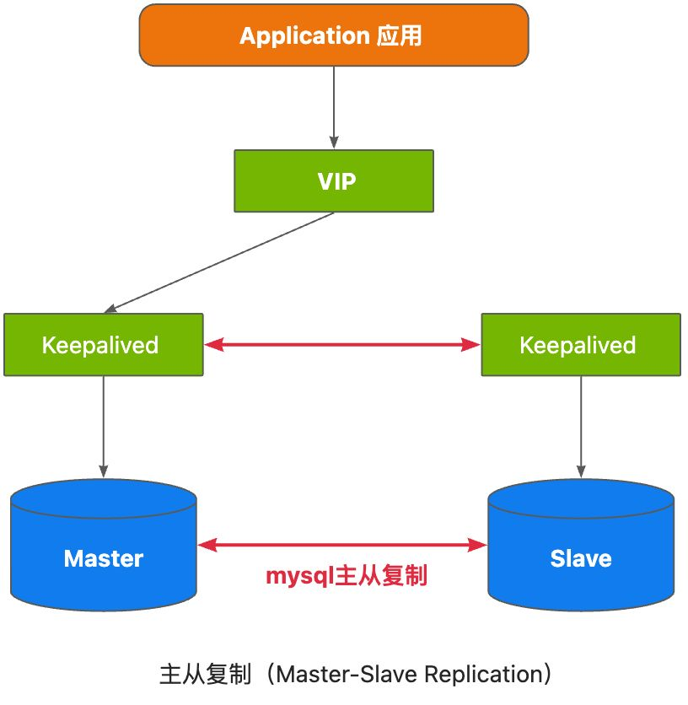首先通过mysql官方提供的能力可以配置主从复制(Master-Slave Replication)架构,mysql本身提供了基于binlog的增量数据同步方案。然后在mysql各主机上配置一个Keepalive脚本监测当前主机,Keepalived使用虚拟路由冗余协议(VRRP)来管理虚拟IP地址,并确保只有一个服务器在处理流量。同时定期检查服务器的健康状态,如果服务器出现故障或不可用,会自动进行切换。这个过程对应用是透明的。
